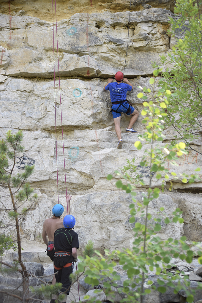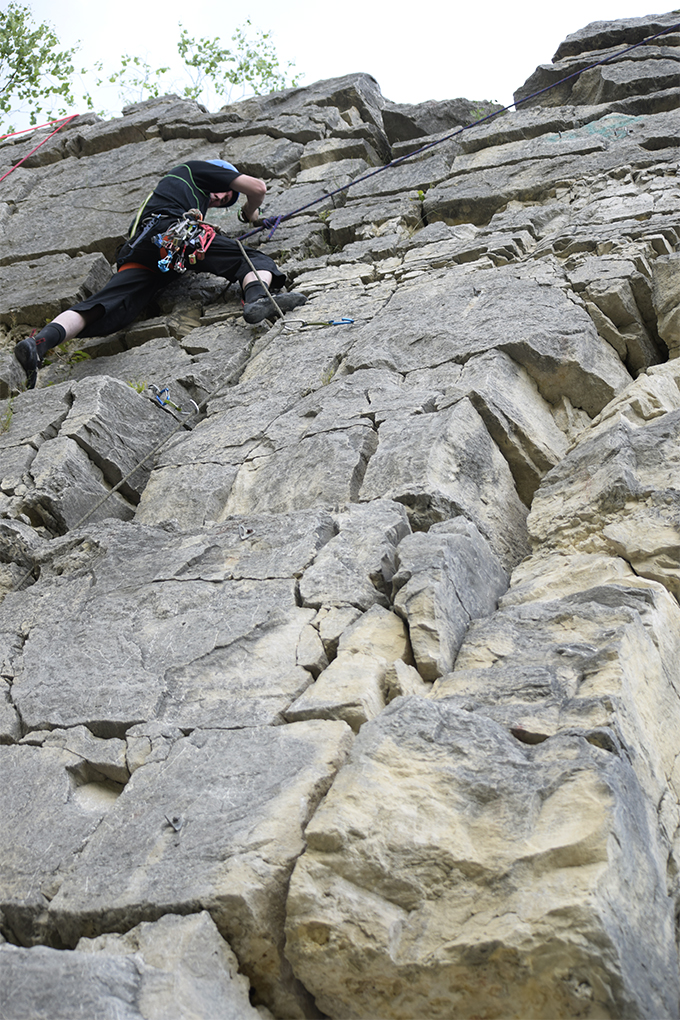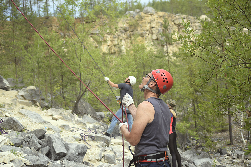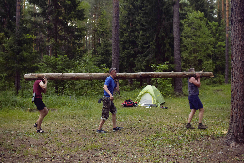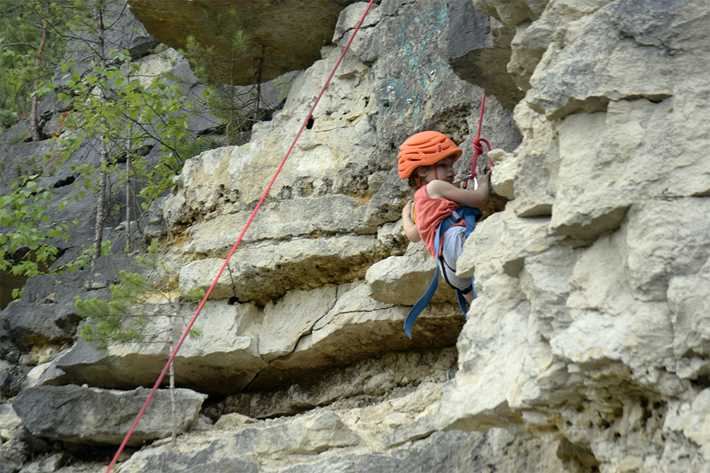 В Дюкино всегда много народу, особенно летом. А еще, это Владимирская область и надо проехать 280 км, чтобы туда добраться. Поэтому мы решили выехать в пятницу вечером. Добрались поздно, в 11 часу вечера, но успели занять шикарные места на стоянках. Правильно сделали, потому что с утра приехало еще больше людей, вставших лагерем вплотную к нам. Мою палатку подперли с одной стороны, и я про себя думал, что наверное это какие-нибудь невоспитанные москвичи. Однако, скоро я узнал, что эти люди приехали из Костромы! Это была группа из нескольких семей, у которых маленькие дети тренировались в скалолазании. Они приехали, когда мы уже проходили скалолазные трассы в каньоне. Потом и они пришли и заняли трассы около нас. Кстати, среди них оказались знакомые лица! Вот так и шутили: «Ну где еще встретиться костромичам?»