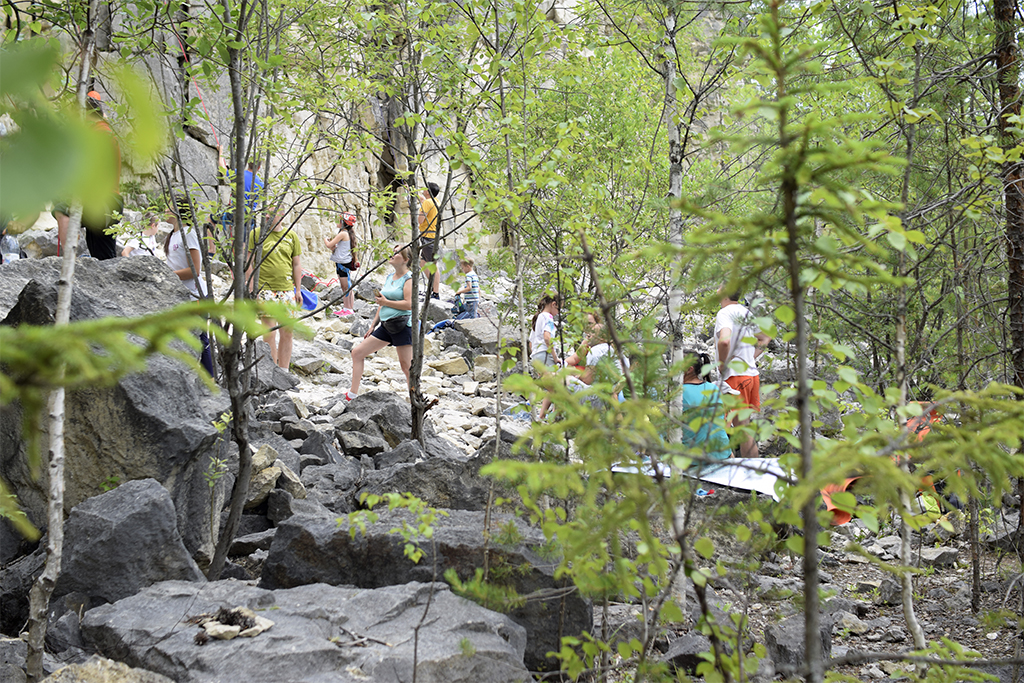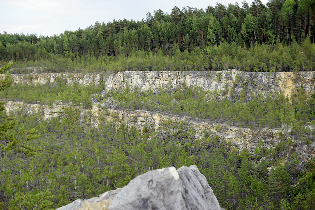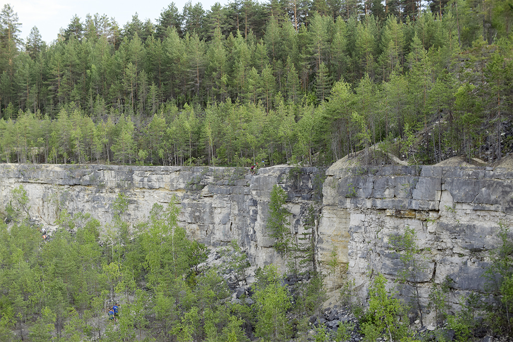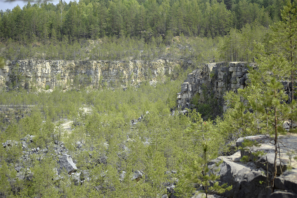 Активная добыча известняка в этих местах началась в 40-50-х годах прошлого века, что и привело к образованию нехарактерного для Владимирской области ландшафта. Глубина карьера достигает 30 – 40 м в 2 – 3 ступени. Сейчас разработка месторождений известняка продолжается, но уже за пределами заказника. Ну, а это место постепенно зарастает низкорослыми березками и с каждым годом все больше и больше привлекает туристов.