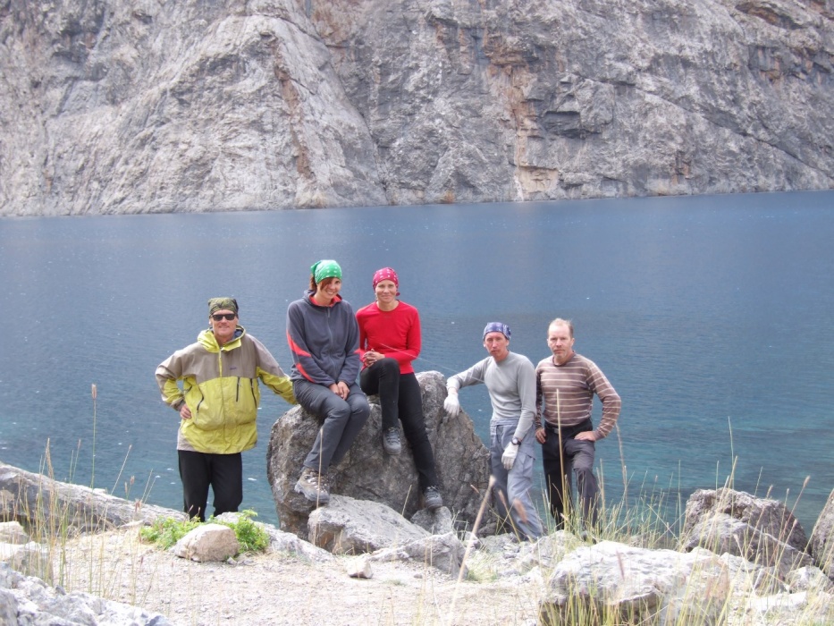 — В-третьих, мы знакомились с районом. Половина группы в Фанских горах до этого не была вообще, а остальные были здесь на альпсборах. Т.е. как свои пять пальцев знали маршруты на Алаудин, Замок и дорогу до Мутных озер, но на этом их знания о районе заканчивались. Поэтому при разработке маршрута уделялось много внимания тому, чтобы посмотреть достопримечательности района, пусть даже в ущерб технической части похода. Таким образом в поле нашего зрения попали Алаудинские и Куликалонские озера, стена Мария-Мирали, озера Искандеркуль и Большое Алло, вершины Чимтарга и Большая Ганза, пик Москва и еще много всего интересного.