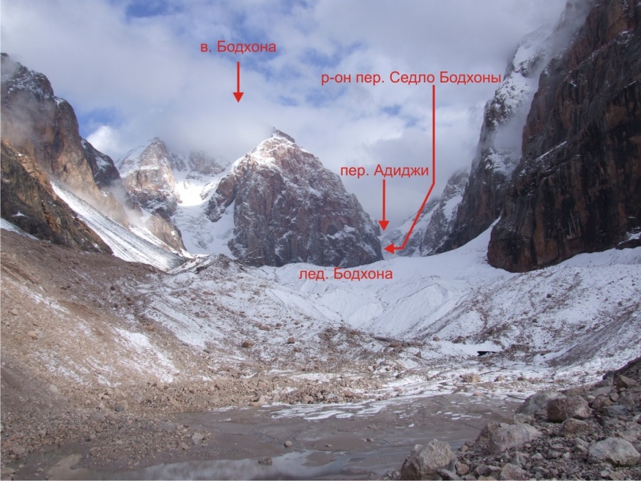 День 6. 19.08. пер. Седло Бодхоны (2Б, 4550м, ск.-ос.) – р. Сурхоб