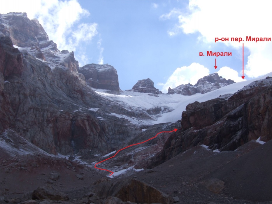 День 17. 30.08. Долина р. Прав. Зиндон – подъем на пер. Мирали (3А, 5060м, лд.-ск.)