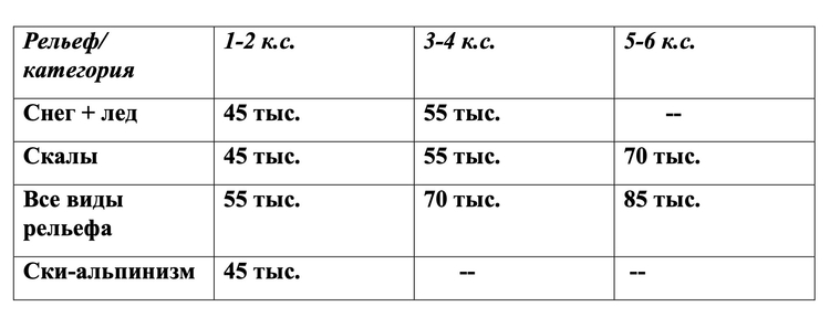 Стоимость проведения аттестации по профессии «Инструктор-проводник по альпинизму и горному туризму» с 15 апреля 2026 года: