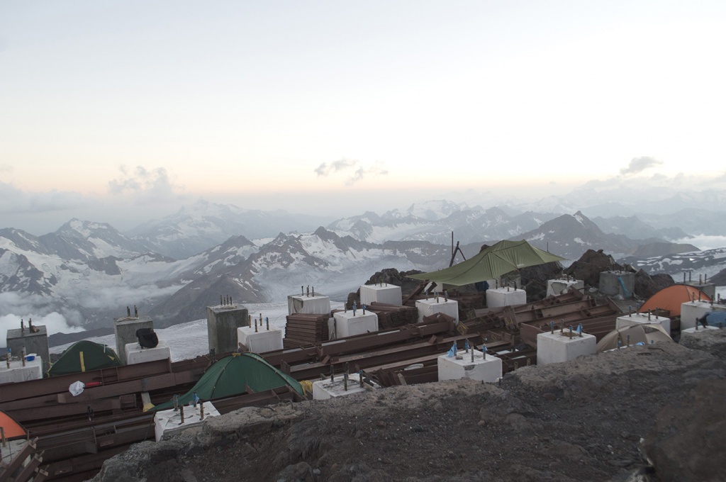 В 2016 году мы совершили восхождение на Эльбрус. Ставили палатку прямо на фундаменте сгоревшей гостиницы. Подробнее об этом: