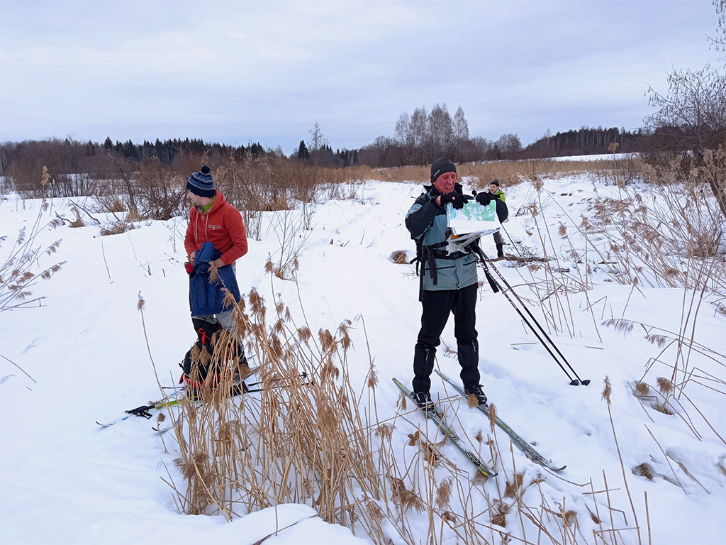 Стемнело. У 82 кп достали налобные фонарики и двинулись вдоль оврага к 21 кп. Взяв его, теоретически успевали на 61 кп. Эта уверенность (или жадность) свела весь наш труд, весь результат на нет. Именно в этот момент мы совершили роковую ошибку. Ничего сложного во взятии 61 кп не было. И мы его взяли. Проблема была в том, что когда стали искать короткий путь к финишу, решили срезать. В результате чего заплутали и потеряли драгоценное время. Уже тогда становилось ясно, что не успеваем. Около деревни Панино, Серега четко осознал, что мы потерпели фиаско. Он связался с Михаилом Юрьевичем Басовым и снял команду с соревнований. Вот так бесславно закончился наш заезд, в которым мы на лыжах преодолели не менее 73 км, включая участки с пересеченкой, типа оврагов, незамерзших мелких речек, холмов и кустарника. Расстояния между кпшками составляли, в среднем, 5 км.