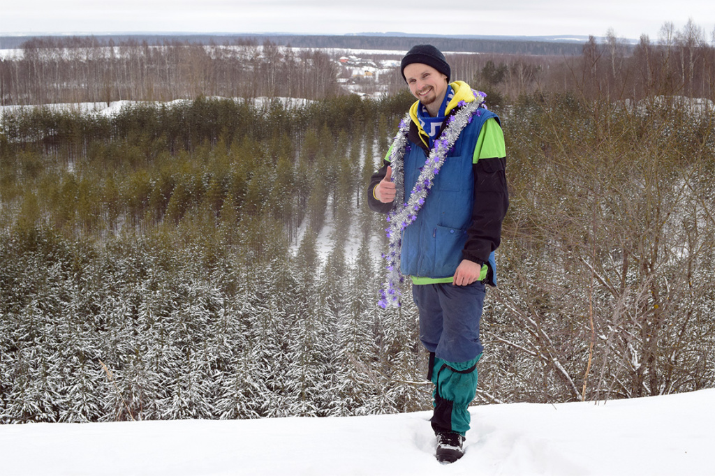 Пригород Костромы, деревня Солониково. Январские праздники, 2018 год, 10 градусов мороза. Вид с возвышенности на посадки. Рядом находится деревня Чижово, рядом с которой расположена хорошая лыжная трасса для спортсменов.