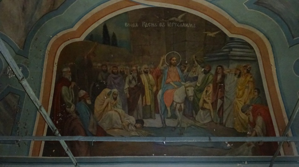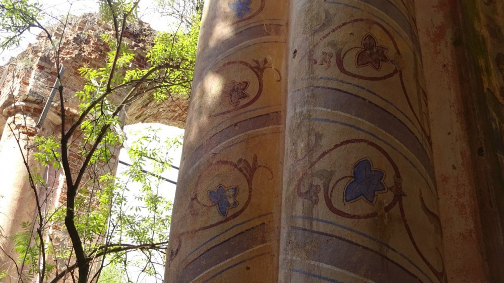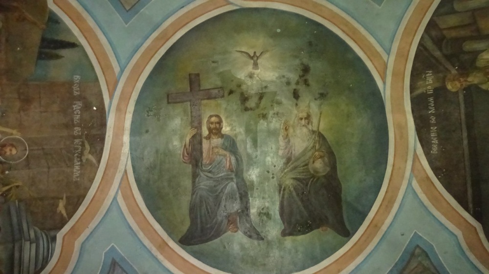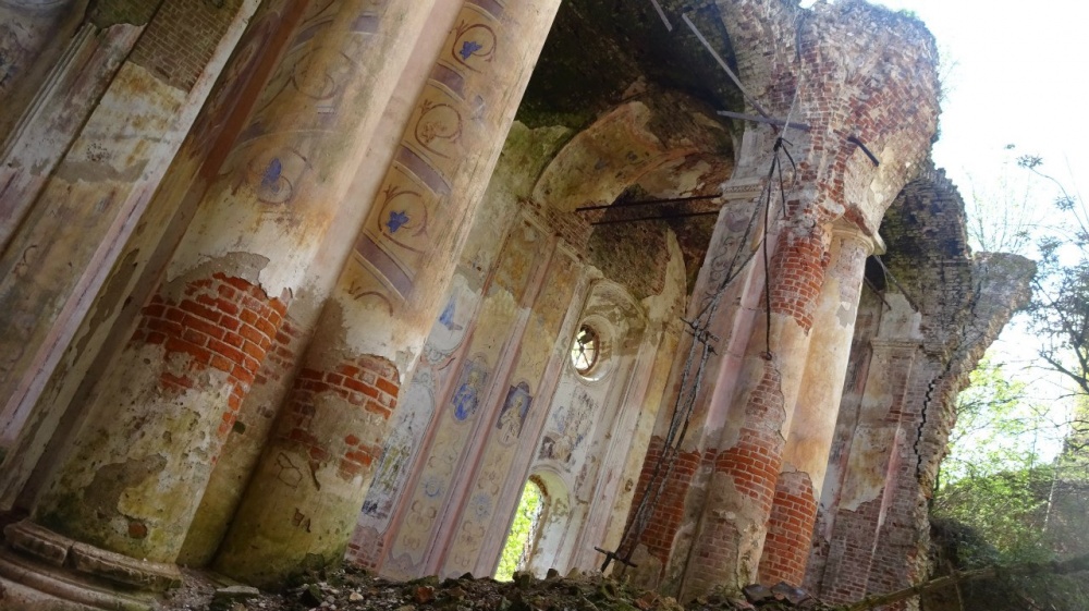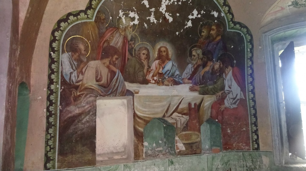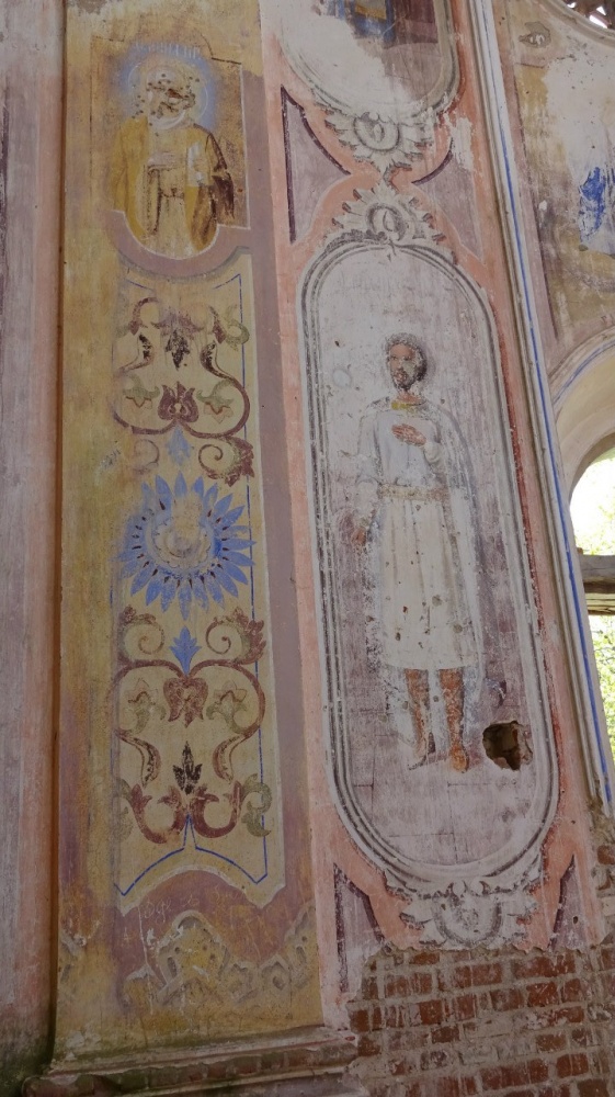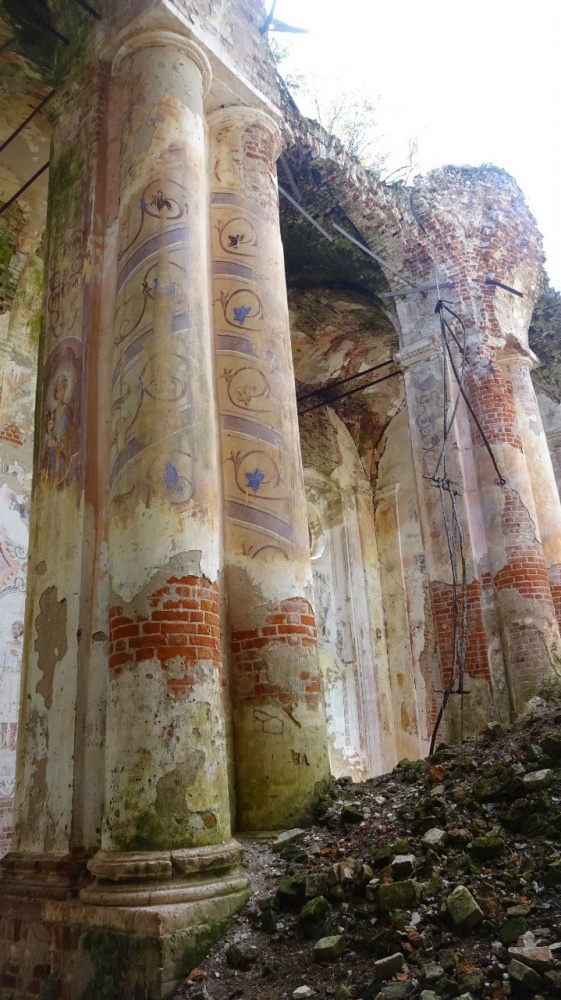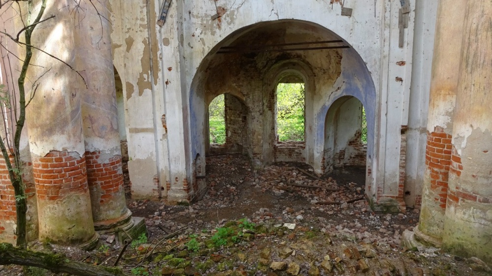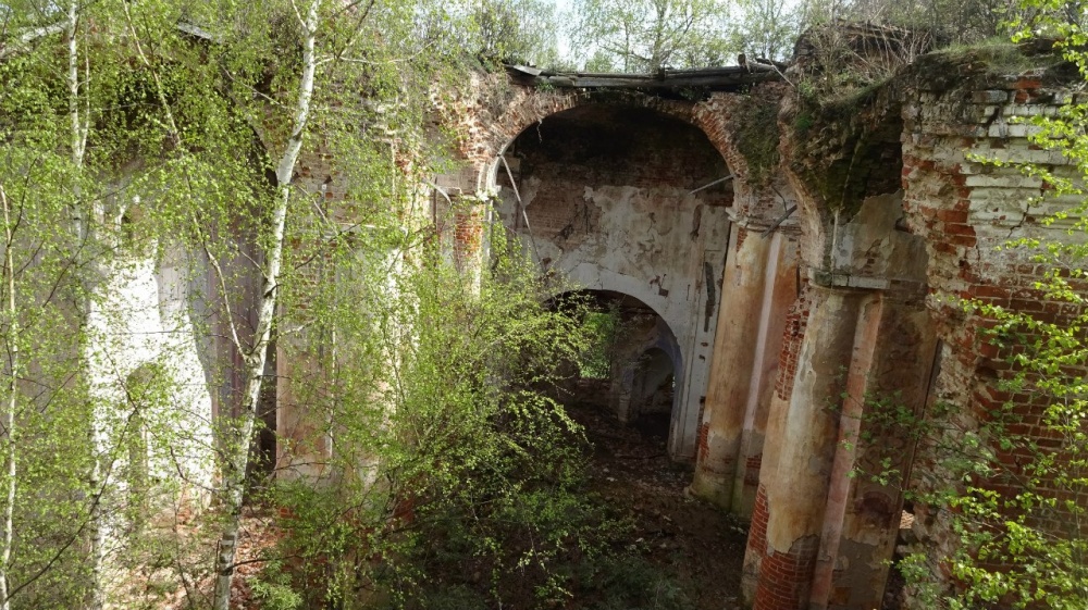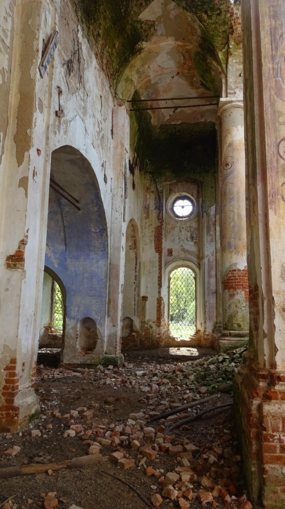 Следующая достопримечательность — церковь Благовещения Пресвятой Богородицы в нежилом селе Протасово, 1783 г. основания. Хоть церковь и выглядит заброшенной, мы обнаружили следы недавно проведенной службы. Сохранились фрески, иконостас, увы, без икон, а также есть возможность забраться на колокольню.