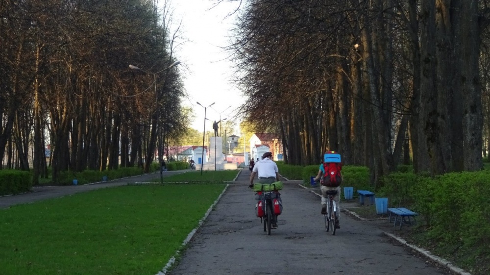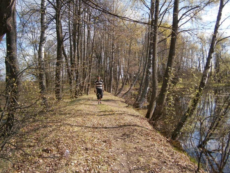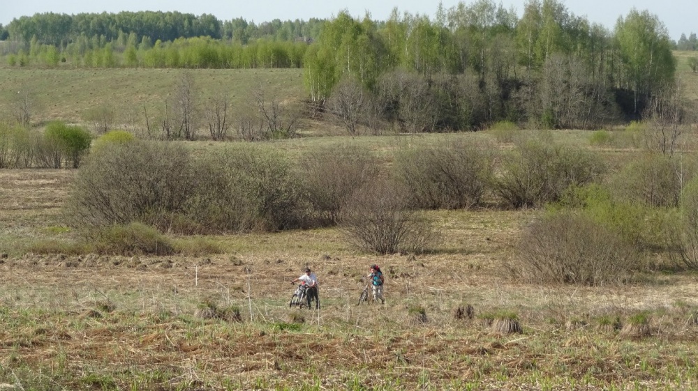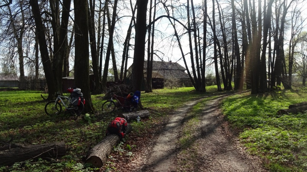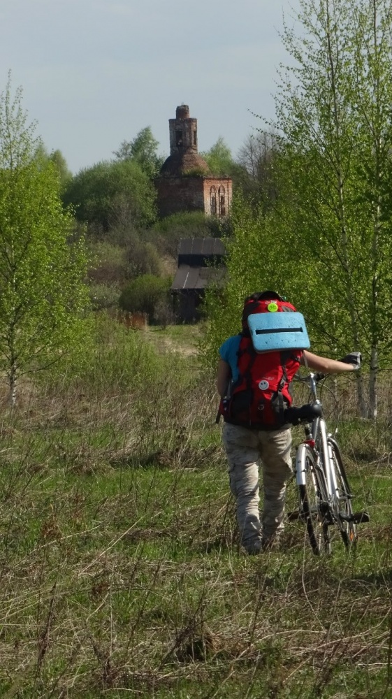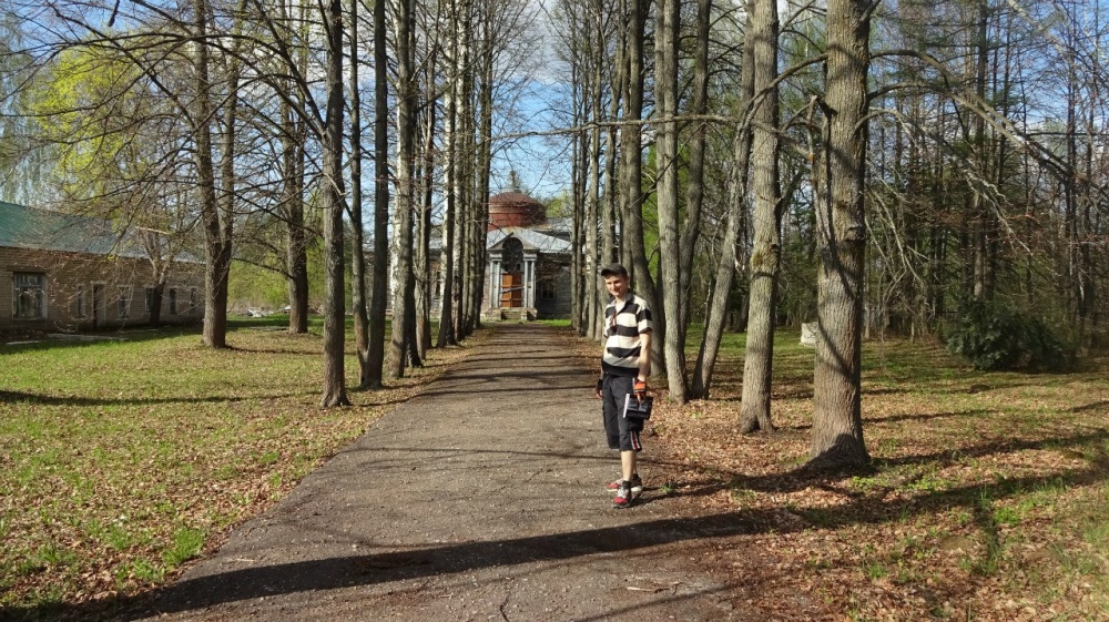 5 мая, время за полдень. Старт от ТЦ «Паново». Погода хорошая, двигаемся быстро несмотря на асфальт низкого качества. Свернули на Космынино. Цель в этот день — осмотреть липовую аллею, относящуюся некогда к усадьбе Собакино. Увы, сейчас не видно даже фундамента — здание полностью разрушено.