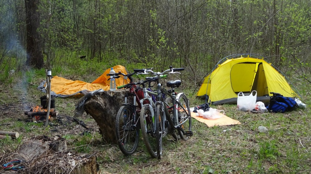 Проехав проселочной дорогой, мы заметили хорошее место для ночевки недалеко от Нерехты. В лесу удобная поляна и рядом речка Солоница. Там мы встали, когда вернулись их Нерехты.