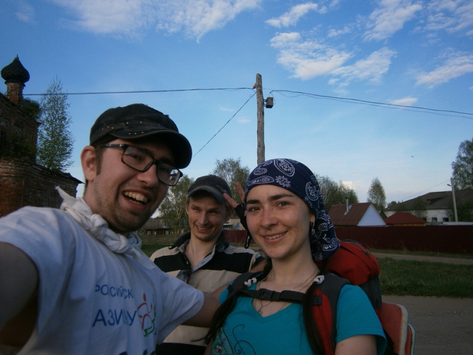 Далее наш путь лежал через с. Спас на с. Красное-Сумароковых. Там расположены две церкви: летняя и зимняя. В зимней находятся две больших печки, украшенных изразцами. После осмотра церквей нам надо было выбраться на волгореченскую трассу, двигаясь по малопроходимой тропе в поле. Т.к. уже смеркалось, мы встали в поле в удобном месте у речки.
