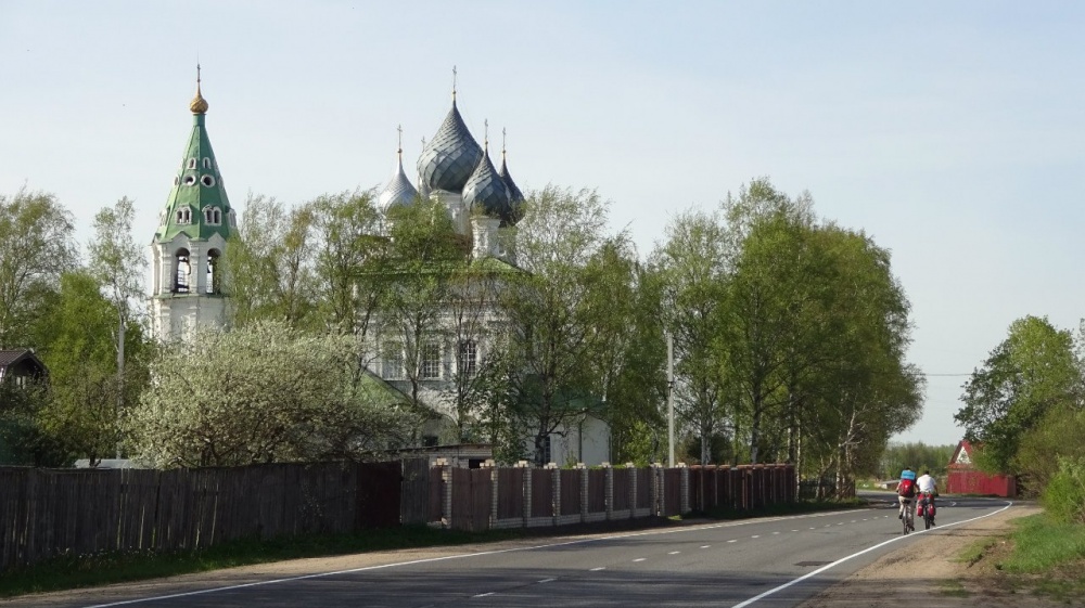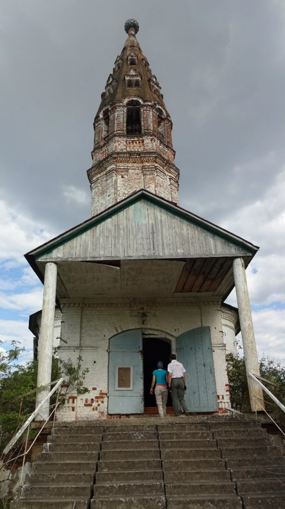 Утром, в пешем порядке быстро выбрались на волгоречеснкую трассу, попутно посетив разрушающееся здание церкви Николая Чудотворца 1766 г. в с. Бартеньево. Оно даже не обозначено на большинстве карт, в том числе гугл и яндекс карт. Потом мы посетили Волгореченск, проехав через центр города. Далее наш путь лежал через с. Сидоровское до с. Красные Пожни. Там находится паромная переправа через Волгу.