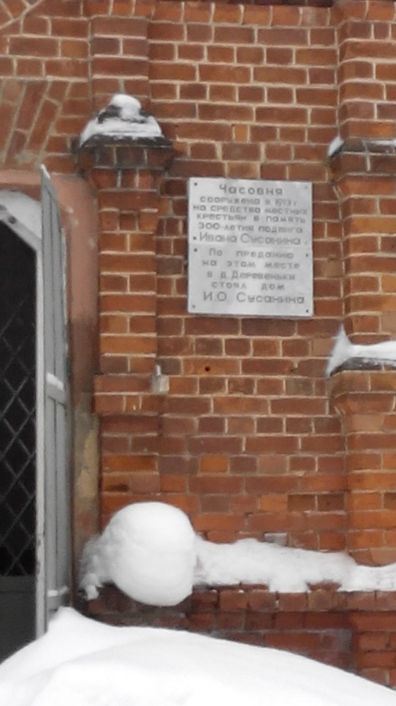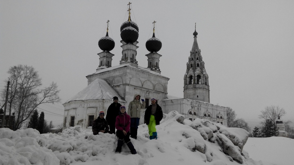 23.02.17. В 8:30 благополучно добрались до Сусанино на маршрутке. В первый день запланирован радиальный выход к с. Домнино. Оставляем вещи в «Десяточке» в аптеке у доброй тетеньки и отправляемся вдоль автодороги Кострома – Буй к часовне, которая находится на месте ныне несуществующей д. Деревеньки. Оттуда к д. Перевоз и далее к месту подвига Ивана Сусанина. Обедаем недалеко от известного камня и наблюдаем, как москвичи (мы узнали одного молодого актера) снимают передачу про И. Сусанина. Пообедав отправляемся в с. Домнино. Там остановились около церкви. Батюшка, отец Александр, проходя мимо нас, сидящих в сугробе, с участием в голосе спросил: «Может чайку?» После чего отвел всех в недавно построенный сруб, где угостил чаем, конфетами и печеньем. Согревшись и отдохнув, возвращаемся в Сусанино. Ночуем в единственной в селе школе.