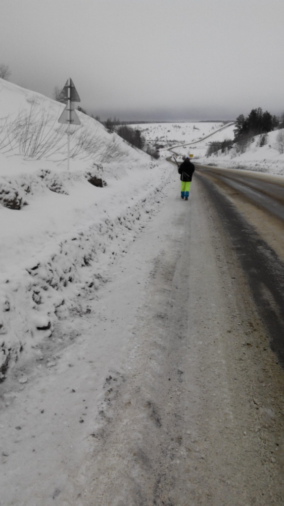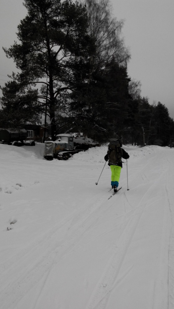 25.02.17. Подъем в 6:00, выход в 10:00. Произвели разведку моста в трех направлениях — безрезультатно. Приняли решение вернуться в деревню по своим следам и продолжить движение по тракторной дороге. Эта попытка увенчалась успехом, и вскоре по снегоходному следу мы вышли к мосту. Далее, продолжая движение по «бураньему» следу, вышли к озеру Кишинское. От озера, в итоге, вышли к д. Перемилово. От деревни направились к трассе Сусанино – Кострома. Выйдя на трассу продолжили движение по ней до поворота на Бычиху. Была ясная погода, поэтому с этого дня самые красочные фото!