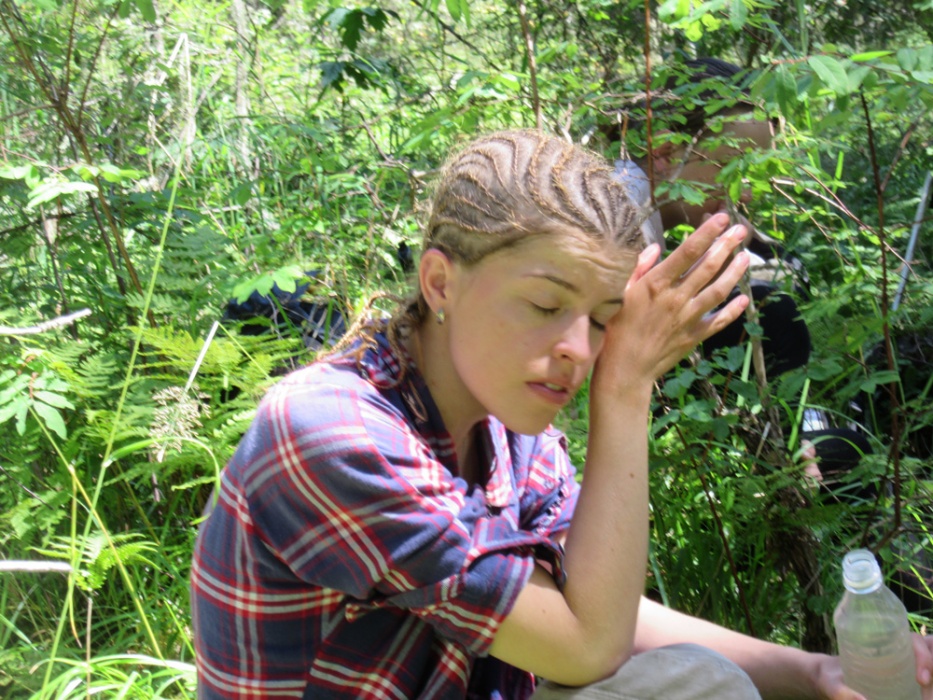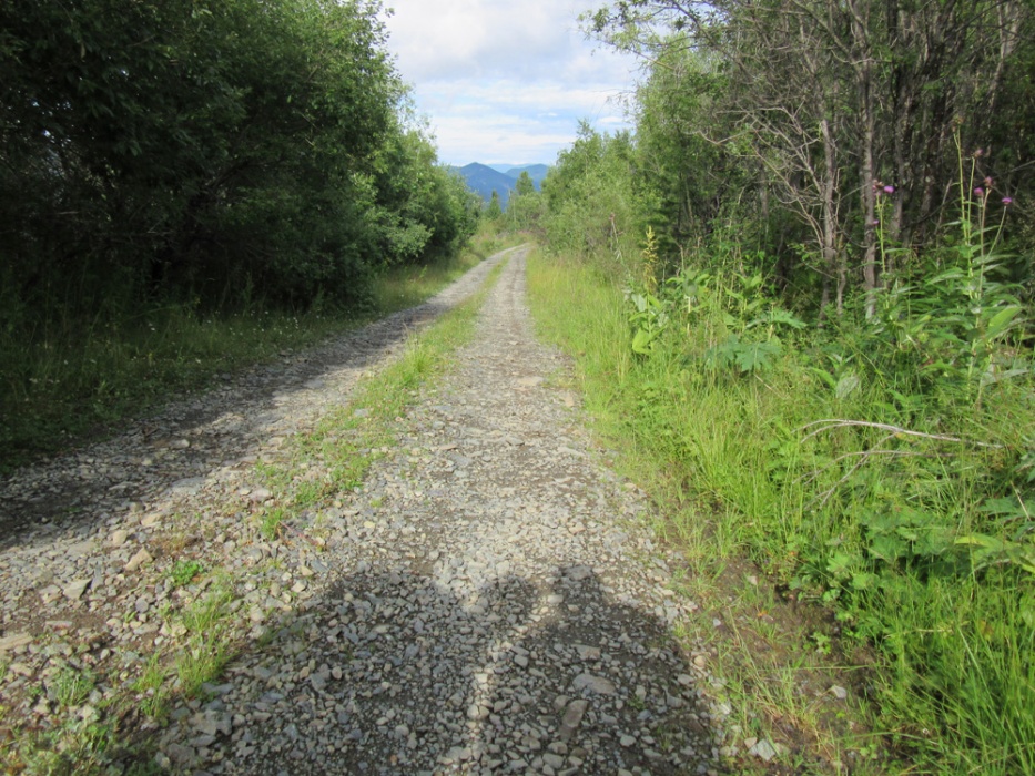31.07. Весь день с разной силой идёт дождь. Идём по лесовозной дороге в нашем направлении. Выходим на перевал Саганы. Время от времени попадаются боковые грунтовые дороги. Мы проверили пару, они ведут к вырубкам. К вечеру начали попадаться ручьи. Наконец, в 19:30 дорога неожиданно закончилась на вырубке. Внизу шумит река, склон очень крутой, лесистый и завален буреломом. Последний ручей нами замечен 40 минут назад. Темнеет, принимаем решение вставать на вырубке.