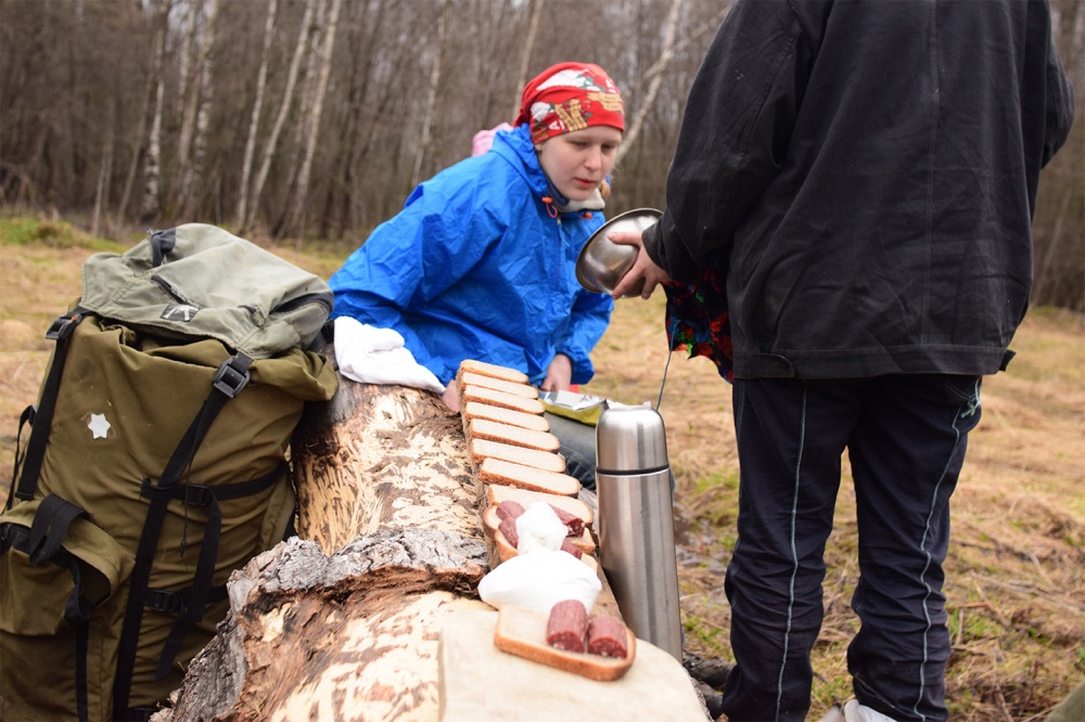 Первый день. 1 мая. Стартовали от с. Северное. Идем в сторону Бритоусово. Погода теплая, сухая, дорога хорошая, не заблудишься. Ориентирование начинается после села. Дело в том, что в тех местах вдруг образовались делянки. На картах дорога от Бритоусова до Кишинского озера показана четко. Но на деле вышло, что мы немного заплутали. Возможно где-то пошли не по той дороге. В какой-то момент она просто закончилась и пришлось выходить по азимуту.